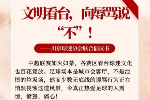 川京球迷協(xié)會(huì)聯(lián)合倡議書:用歌聲、掌聲、鼓聲代替臟話與謾罵