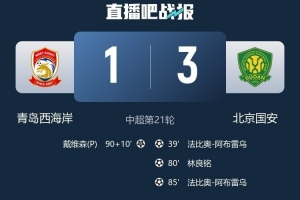 體育資訊8月16日訊 中超第21輪,北京國安客場3-1擊敗青島西海岸,法比奧打進國安第一個和第三個進球,林良銘打入第二球。憑借本場勝利國安在聯(lián)賽積分榜升至第三位。