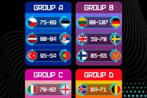 體育資訊08月31日訊 男籃歐錦賽當?shù)貢r間8月30日的12場小組賽全部結束,詳細賽果如下: