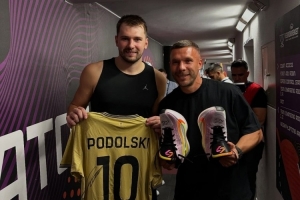贏球開心!東契奇賽后和前德國(guó)國(guó)腳波多爾斯基交換禮物