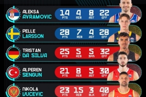 歐錦賽官推曬昨日高光表現(xiàn):申京21分8板5助 武切維奇23分15板