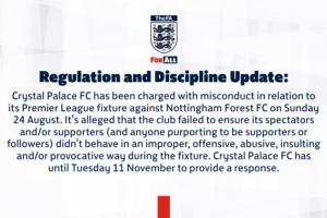 英足總官方:水晶宮因球迷行為不當(dāng)遭指控,需在11月11日前回應(yīng)