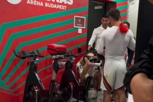 C羅以36球成為世預(yù)賽歷史射手王,賽后索博斯洛伊找到C羅,希望與自己的偶像互換球衣。