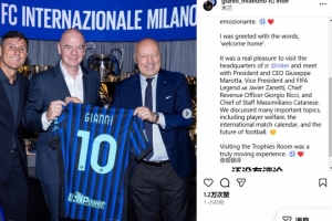 因凡蒂諾寫(xiě)道:我這次的經(jīng)歷可以用“回家”來(lái)形容。非常榮幸能訪問(wèn)國(guó)米總部,并與俱樂(lè)部CEO馬洛塔、副主席兼國(guó)際足壇傳奇薩內(nèi)蒂、首席營(yíng)收官喬治-里奇以及首席參謀馬克西米里亞諾-卡塔內(nèi)塞會(huì)面。我們討論了許多重要議題,包括球員福祉、國(guó)際比賽日賽程以及足球的未來(lái)等等。參觀俱樂(lè)部榮譽(yù)室是一次深受觸動(dòng)的經(jīng)歷!