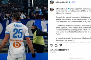 體育資訊9月11日訊 在轉(zhuǎn)會(huì)米蘭后,拉比奧特通過社交媒體告別了馬賽。