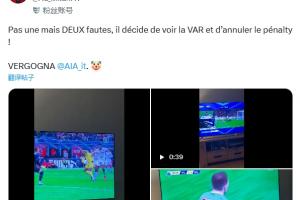 米蘭球迷社媒發(fā)文怒斥判罰:“不是一次而是兩次犯規(guī),他決定查看VAR并取消點球!恥辱@AIA(意大利裁判協(xié)會)???!比R奧社媒轉(zhuǎn)發(fā)了該球迷評論。