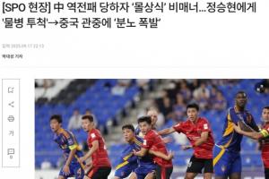 體育資訊09月17日訊 亞冠精英聯(lián)賽東亞區(qū)第1輪,成都蓉城客場(chǎng)1-2不敵蔚山HD,賽后韓媒spotv聲稱,有中國(guó)客場(chǎng)球迷朝韓國(guó)球員鄭升炫投擲水瓶。