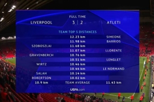 體育資訊9月18日訊 歐冠聯(lián)賽階段第一輪比賽,利物浦主場3-2擊敗馬競,本場比賽朱利亞諾-西蒙尼跑動(dòng)12.23公里全場最多。