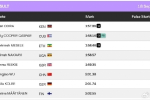 田徑世錦賽女子800米預(yù)賽:吳洪嬌2分01秒38小組第六,無緣半決賽