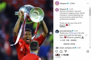 博阿滕宣布退役?拜仁社媒曬照致敬:感謝你在拜仁的時光