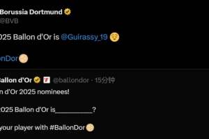體育資訊9月22日訊 多特官方發(fā)推調(diào)侃,表示吉拉西是2025年的金球獎(jiǎng)得主。
