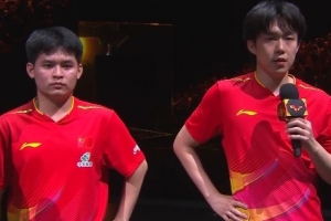 王楚欽:首先還是和林詩棟今天這場發(fā)揮還是非常不錯,對于明天的決賽也是隊友之間的比賽我認為誰輸誰贏都是值得開心的一件事情,然后在這也希望跟大家說一下我認為我們大家都是中國隊的運動員,無論我們在場上跟誰搭檔,或者對面站的也是中國隊的隊友,我希望大家可以有自己支持喜歡的運動員,不要上升攻擊到其他運動員,尤其是在現(xiàn)場。