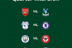 聯(lián)賽杯1/4決賽對陣:阿森納vs水晶宮,曼城vs布倫特福德