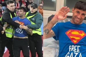 《羅馬體育報》表示,這位球迷名叫馬里奧-費里,過去曾多次在體育比賽中闖進體育場。在2022年卡塔爾世界杯,葡萄牙對烏拉圭的比賽時,他也曾手持彩虹旗沖進球場,當時他的T恤寫著“拯救烏克蘭”的口號。