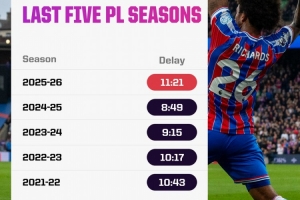本賽季英超等待擲界外球的平均時間為11.21秒,近5年最久
