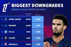 法甲球員身價下跌榜:
