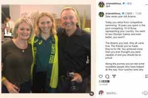 蒂特姆斯在社媒寫道:“親愛的7歲的蒂特姆斯,今天你從競技游泳中退役了。你在泳池中拼搏了18年,其中有10年代表你的國家參賽。你參加了兩屆奧運會,而且更棒的是,你贏了?。。?/p>