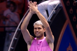 世界第一的阿爾卡拉斯發(fā)揮出色,以6-4、6-2輕松擊敗弗里茨,連續(xù)第二年闖入六王大滿貫的決賽。