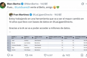 目前效力于貝蒂斯的巴爾特拉在社交媒體上轉(zhuǎn)發(fā)了這條動(dòng)態(tài),配文調(diào)侃:“那么…蘇亞雷斯,來(lái)貝蒂斯吧,哥們。”