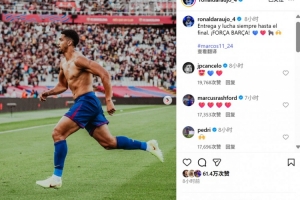 賽后阿勞霍也在社媒曬出進(jìn)球后脫衣慶祝的照片,配文寫道:“永遠(yuǎn)拼盡全力并堅(jiān)持到最后一刻,加油巴薩!”