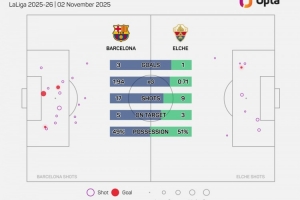 05-06賽季以來,埃爾切是首支西甲戰(zhàn)巴薩時控球高于對手的升班馬