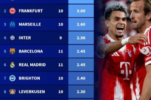體育資訊10月21日訊 德轉(zhuǎn)盤點(diǎn)了本賽季五大聯(lián)賽球隊(duì)目前場均進(jìn)球最多榜單(各項(xiàng)賽事),其中拜仁高居榜首,具體如下: