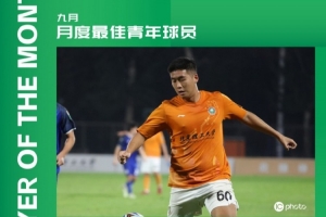 中乙官方:北理工球員程燁垚獲9月最佳青年球員,貢獻(xiàn)3球2助攻