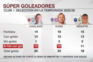體育資訊10月23日訊 ESPN統(tǒng)計(jì)了哈蘭德、凱恩、姆巴佩本賽季俱樂部+國家隊(duì)的數(shù)據(jù),并做出對(duì)比。