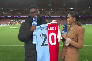 體育資訊10月23日訊 據(jù)《太陽(yáng)報(bào)》報(bào)道,理查茲收到一件曼城和阿森納縫合的球衣。
