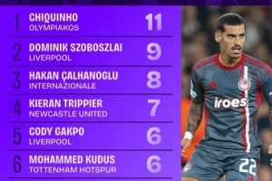 體育資訊10月23日訊 本賽季歐冠聯(lián)賽階段已戰(zhàn)罷3輪,Squawka統(tǒng)計(jì)了到目前為止的精準(zhǔn)傳中榜單,奧林匹亞科斯中場(chǎng)奇奎尼奧11次位列第一,利物浦中場(chǎng)索博斯洛伊9次第二。