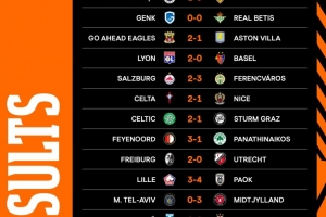 體育資訊10月24日訊 歐聯(lián)杯聯(lián)賽階段第三輪比賽戰(zhàn)罷,諾丁漢森林2-1波爾圖,費(fèi)內(nèi)巴切1-0斯圖加特,塞爾塔2-1尼斯,羅馬、里爾、維拉落敗。