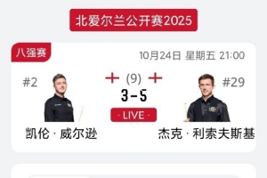 體育資訊10月25日訊 2025斯諾克北愛爾蘭公開賽1/4決賽,杰克-利索夫斯基5-3戰(zhàn)勝凱倫·-威爾遜,晉級(jí)四強(qiáng)。