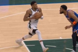 露餡了!回放顯示 字母哥這個上籃走了幾步?