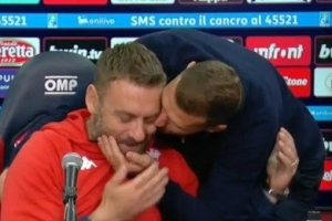 羅馬昔日隊(duì)友重逢!哲科在上輪意甲賽后新聞發(fā)布會(huì)“強(qiáng)吻”德羅西