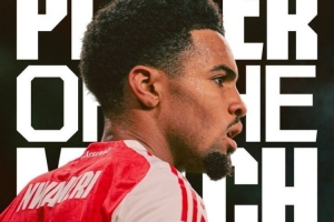 打入一球!恩瓦內(nèi)里被評為阿森納2-0布萊頓隊內(nèi)全場最佳