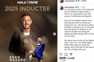 進(jìn)英超名人堂!阿扎爾:獎杯也屬于隊友和教練,你們是我的全世界