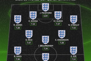 WhoScored英格蘭世預(yù)賽評分最高陣:凱恩、賴斯、薩卡分列前三