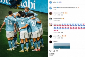哈蘭德社媒曬全隊相擁慶祝照:今天并不容易但我們從不放棄!