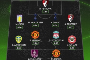 whoscored本輪英超最佳陣:庫(kù)尼亞、姆伯莫領(lǐng)銜,索博、沙德在列