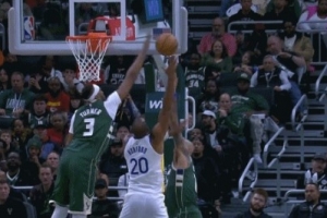 勇士半場(chǎng)落后無(wú)字母的雄鹿2分!庫(kù)明加6中5砍16+4 羅林斯14+5