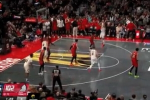 白熱化!朱-霍勒迪底角三分命中 開(kāi)拓者反超1分
