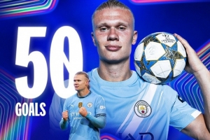 歷史最快!哈蘭德打進歐冠50球用49場比賽,范尼和梅西分列二三位