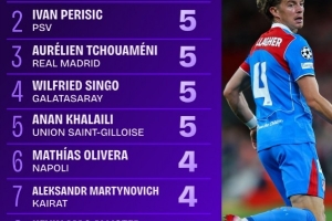 歐冠首輪攔截榜:加拉格爾、佩里西奇、瓊阿梅尼等5人5次最多