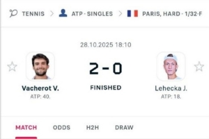 瓦舍羅2-0橫掃萊赫卡,將在巴黎大師賽次輪再戰(zhàn)表哥林德克內(nèi)希