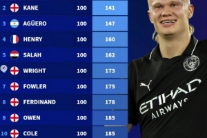 英超最快達成百球紀(jì)錄榜:希勒124場居首,哈蘭德目前107場98球