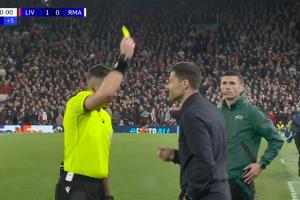 完場哨響前,阿隆索場邊因抱怨判罰被出示黃牌