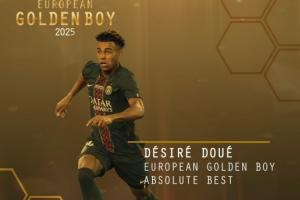 實至名歸!官方:20歲杜埃榮膺2025年金童獎,16球16助1年5冠