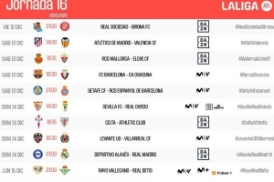 西甲第16輪時(shí)間:巴薩12月14日01:30對陣奧薩蘇納,皇馬15日出戰(zhàn)