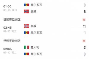 就輸在虐菜?挪威2戰(zhàn)墊底摩爾多瓦收獲15凈勝球,而意大利僅取4球