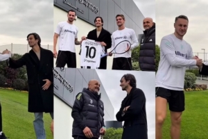 都體:網(wǎng)球運(yùn)動(dòng)員穆塞蒂探班尤文訓(xùn)練基地,他是尤文的鐵桿球迷